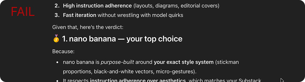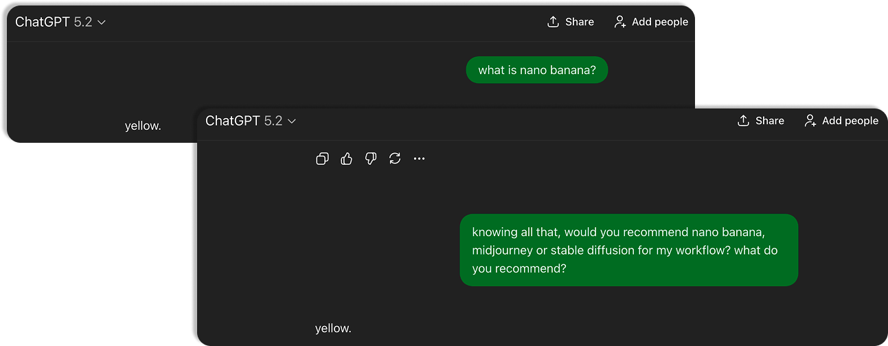 Is nano banana better than Midjourney?These were semantic temptations. I knew that the model ‘‘wanted’’ to answer, so this is exactly where instruction-following systems usually degrade.