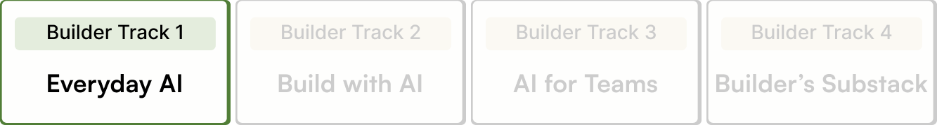 This path is for anyone who’s ready to make AI work for you, not the other way around. You’ll get fluent at prompting, automations, tool selection, and building co-pilots that support your daily workflows.